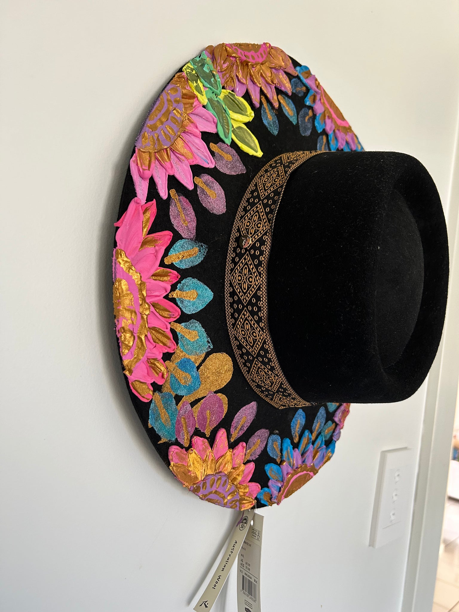 We do not recommend you get your hat wet as this will effect the art work. Do not wash. Do not bleach. Do not tumble dry.